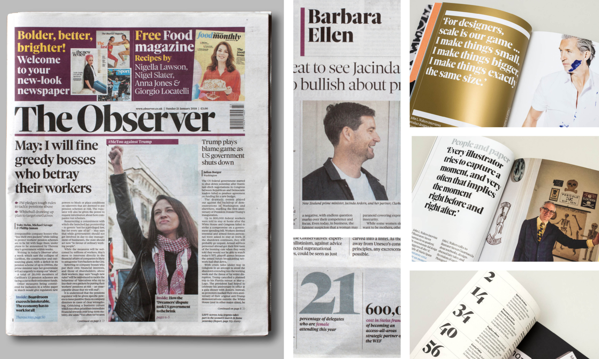 Obviously there is no scientific proof (yet) that this impacts significantly on the reading of a newspaper, but we thought it was appropriate to work with this in mind, in as much as it is a very promising line of research and intuitively seems to respond very well to the historical evolution of type.